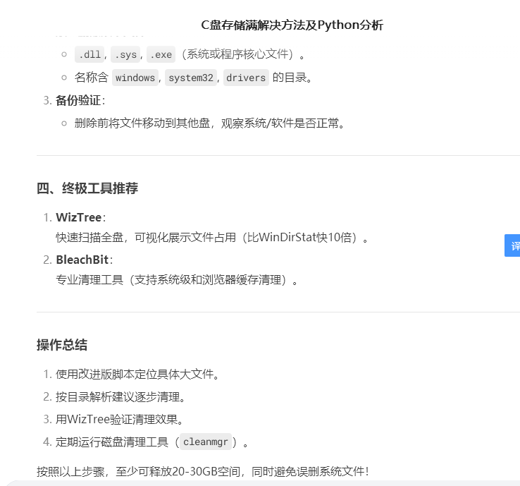 其实这个问题困扰了我很久。所以我运用吸引力法则,让自己去吸引一个工具或者办法,我试过了很多办法,所以今天随便问了问豆包,第一次尝试让豆包给我分析,结果给我写了个python。但是发现并不能用。我不能知道什么目录占比最多。可能是我给的提示词不够。